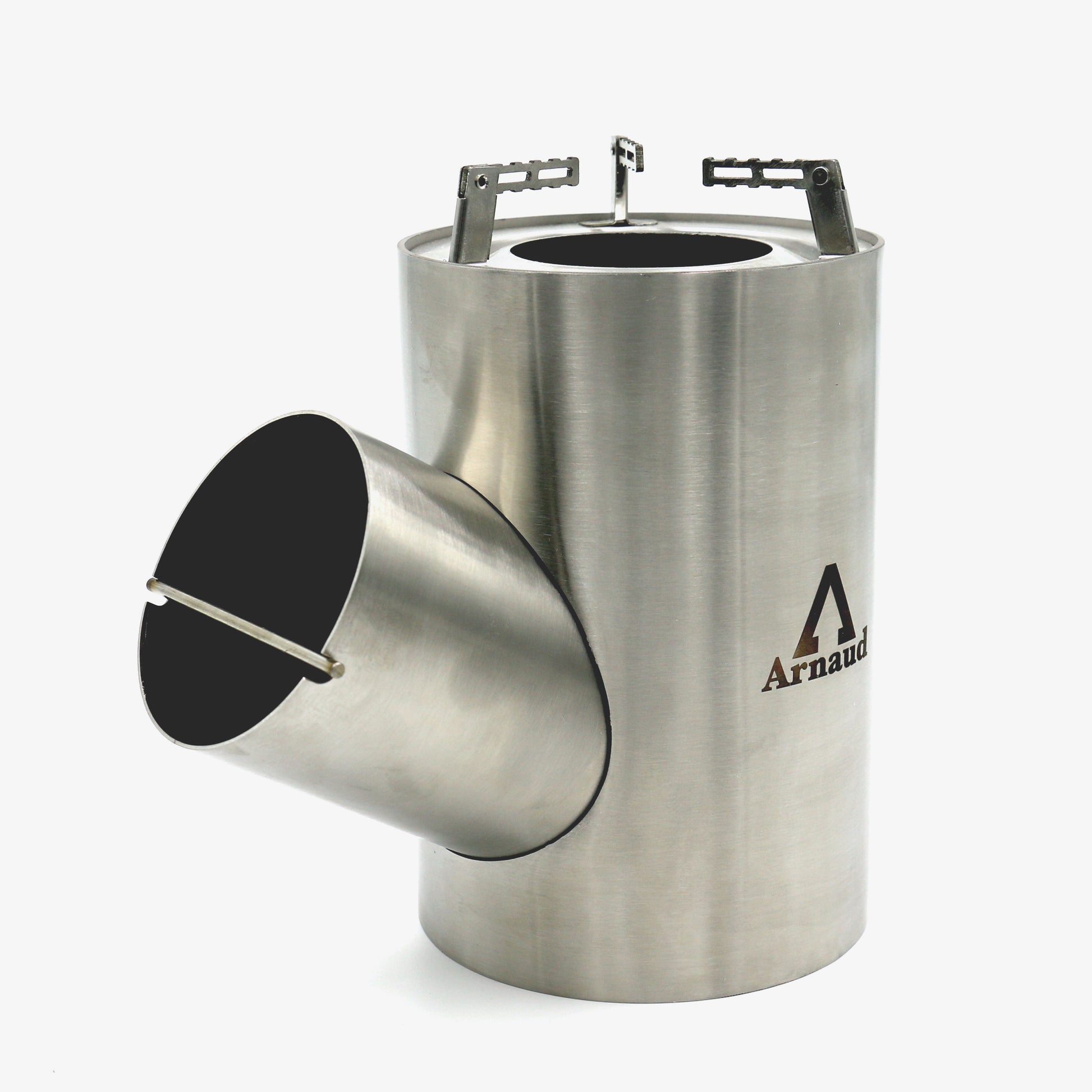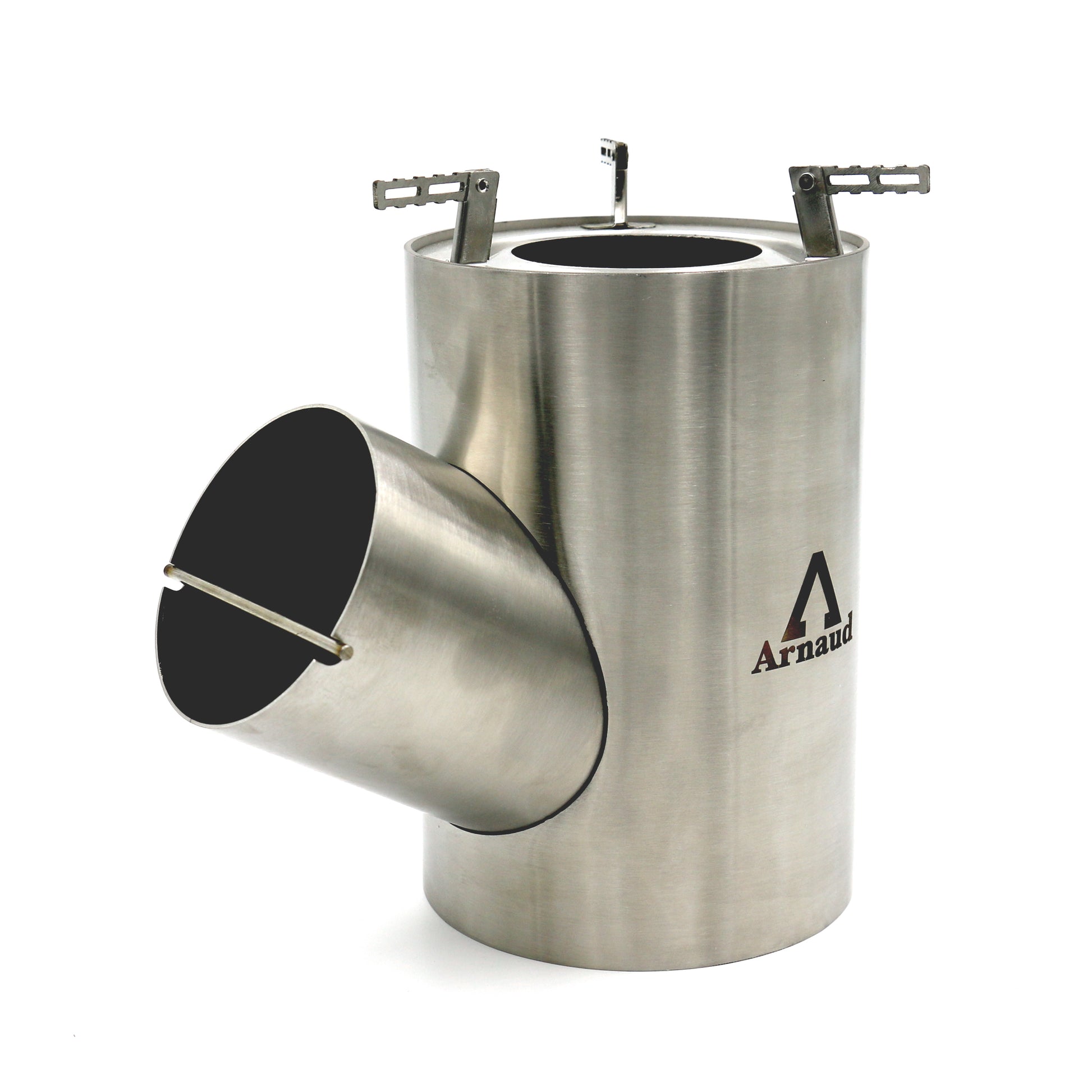 As fuel for the stove, we recommend you to use things you find in nature: wood, twigs, … Thanks to the side tube, you can always add fuel to the rocket stove. Additionally, the 30° angle enables the rocket stove to feed itself.