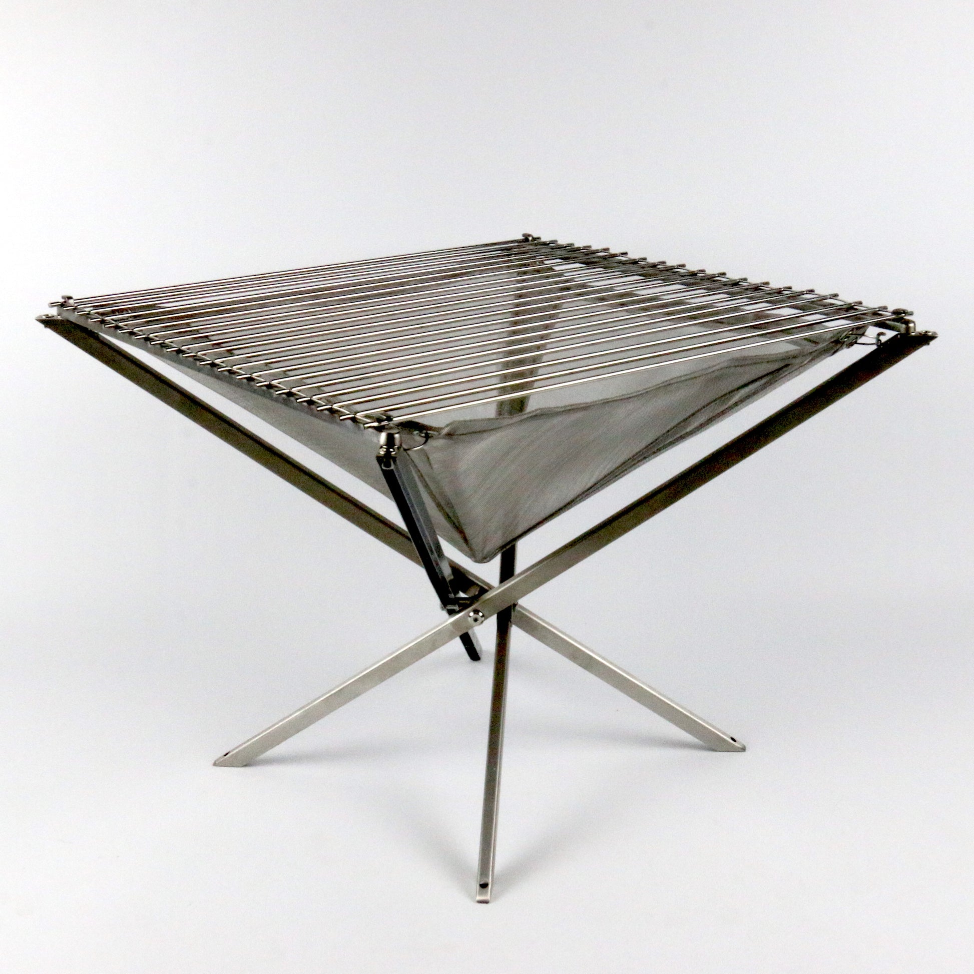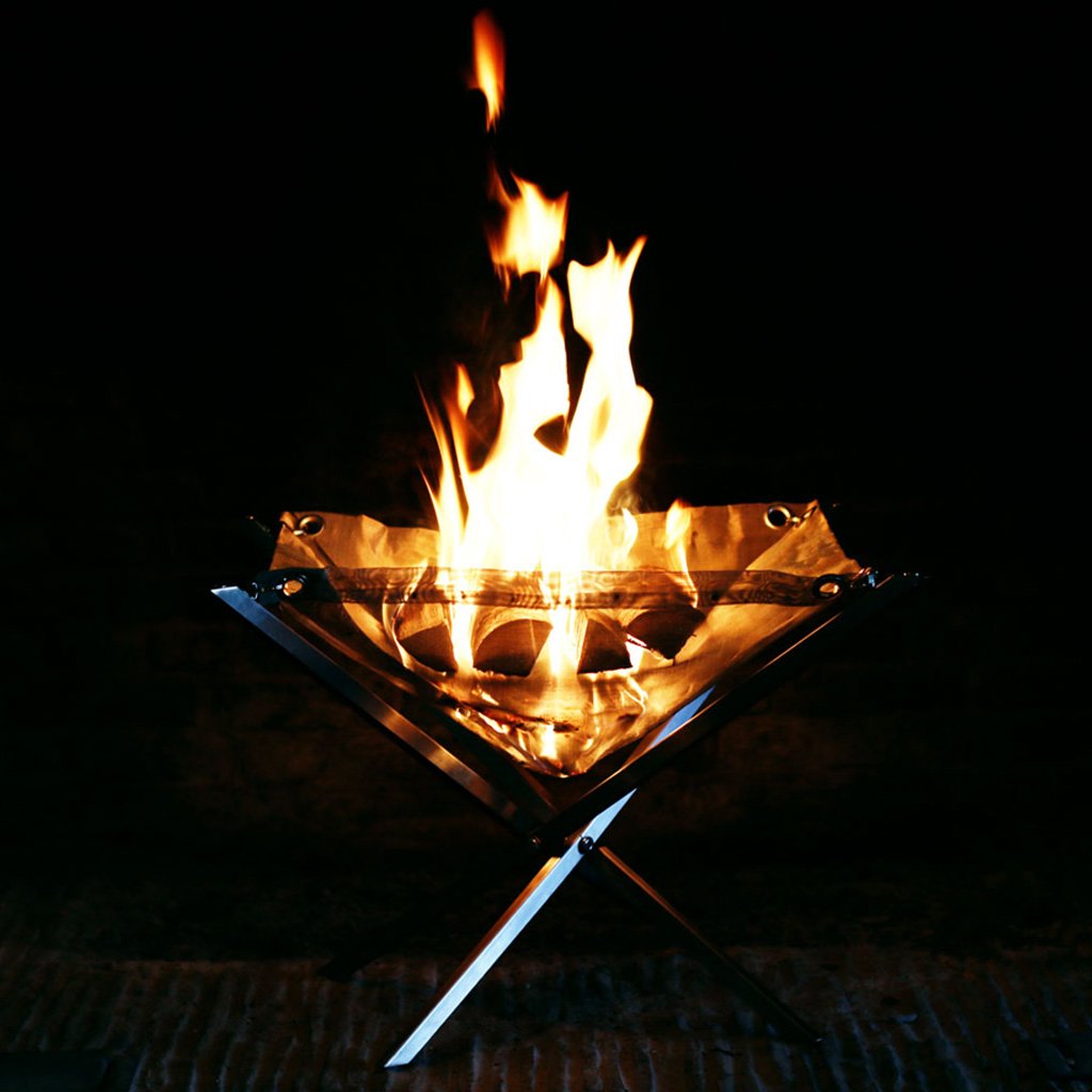 The Firebag hangs in the frame of the Firekorf, which creates a unique fire experience. The Firebag is made of stainless steel wire mesh (304 stainless steel). Even this part of the Firekorf can be fold up and is very light. To ensure the fire burns well, the Firebag is made of materials with oxygen permeability. After removing the coals from the Firebag, the Firebag cools down very quickly, which makes it easy to roll the Firebag back up and put it back in the carrier bag.